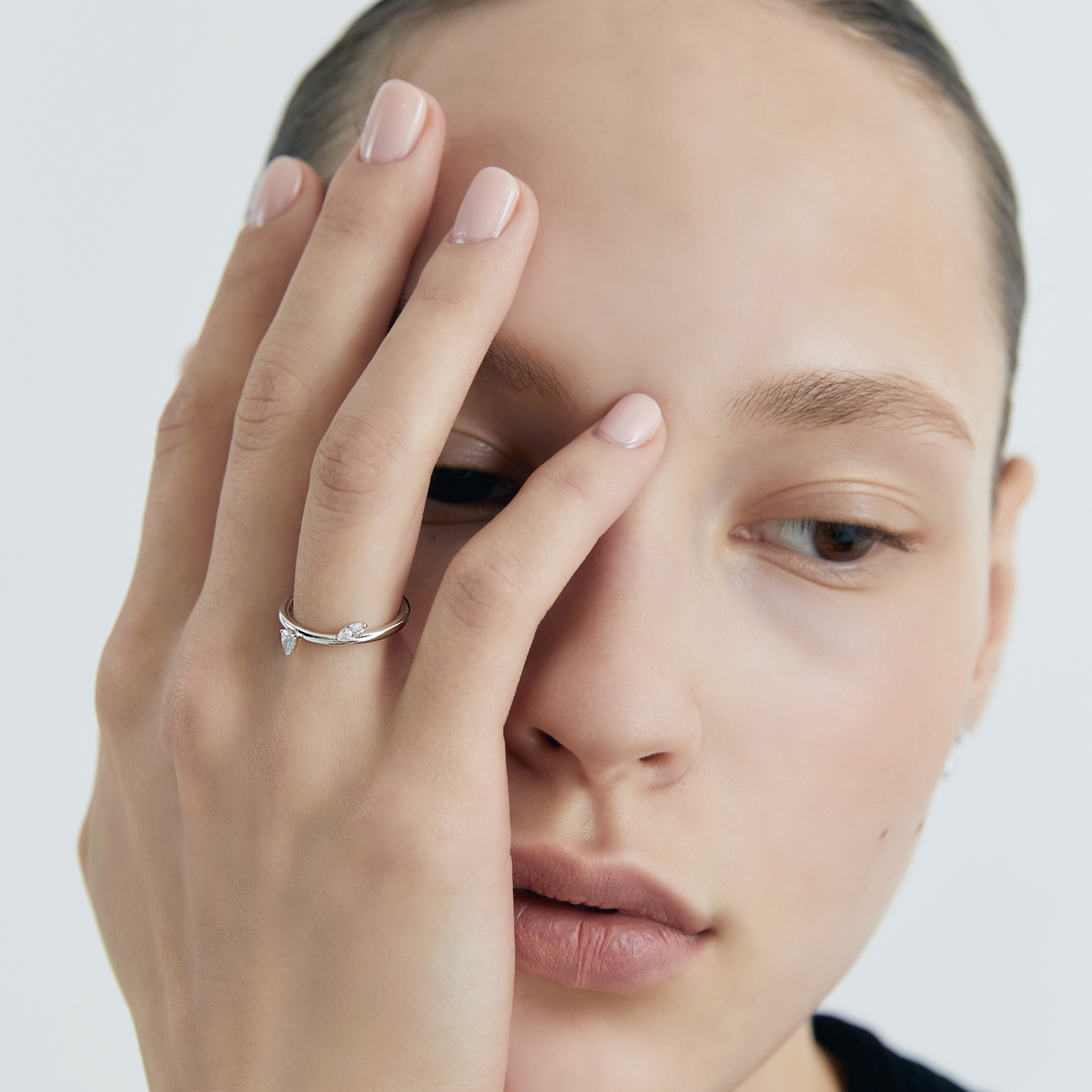슬림한 밴드에 감각적인 스톤 세팅으로 솔리테어링과의 매칭, 레이어드링과의 매칭 또한 자유롭습니다.