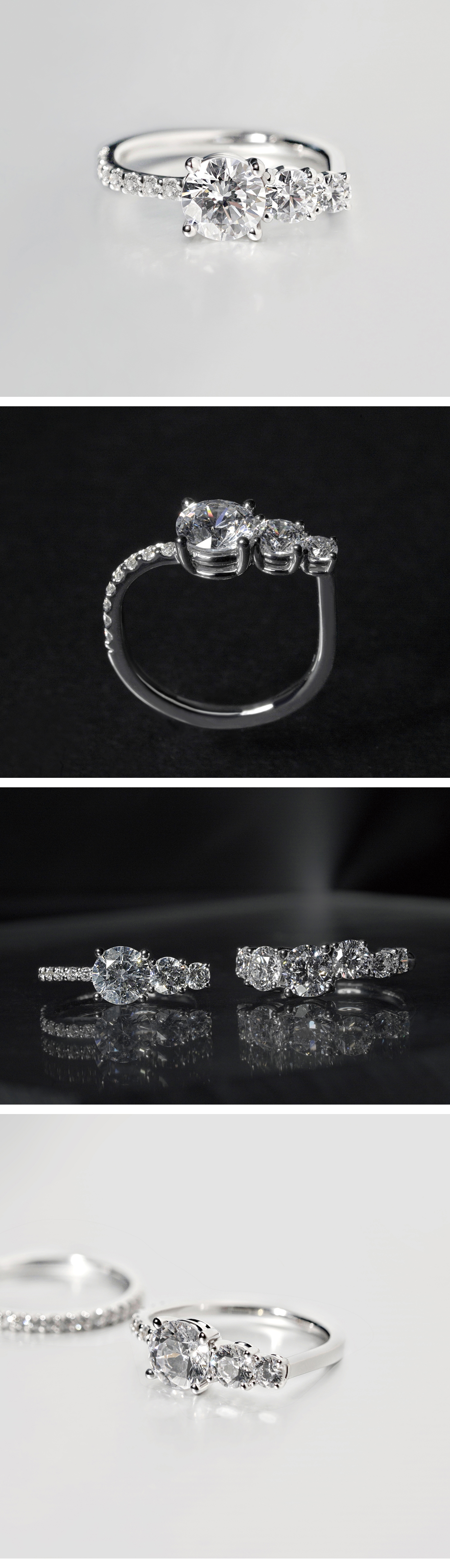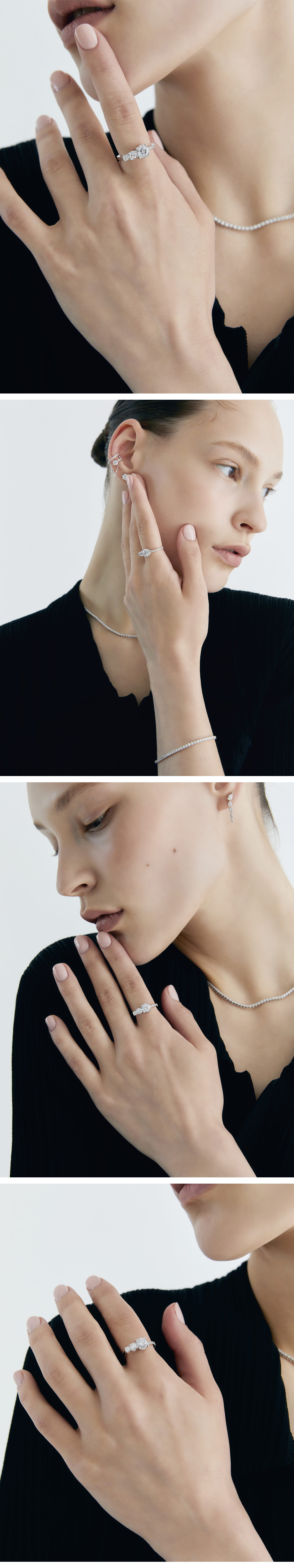 다양한 사이즈의 라운드 브릴리언트 컷 다이아몬드와 파베 세팅 밴드의 조화가 시선을 사로잡습니다.
