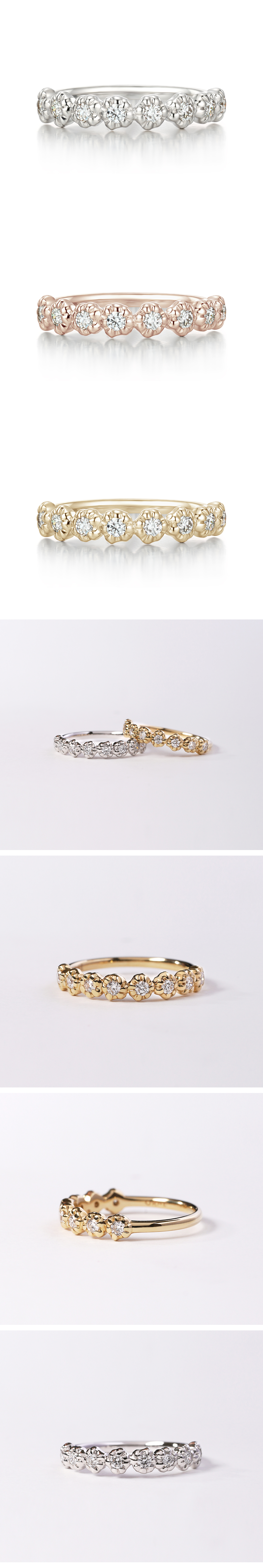 Total 0.24ct (8pcs) Round Brilliant Cut LC Diamonds Loose E/VS2 이상 SIZE 밴드 폭 약 1.5mm * 사이즈는 평균치를 기재하므로 핸드메이드의 특성상 오차가 있을 수 있습니다. * 추후 사이즈 조절 불가 * No.ONW20216R |